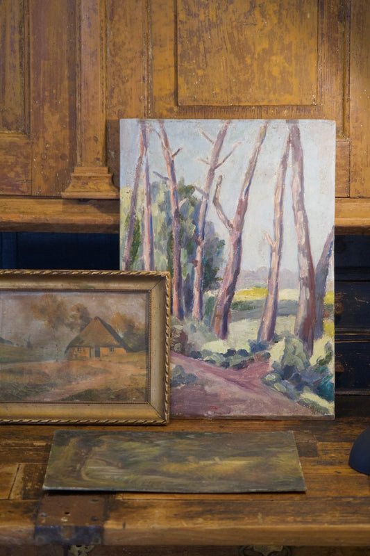 French Oil Painting on Wood, 1920s