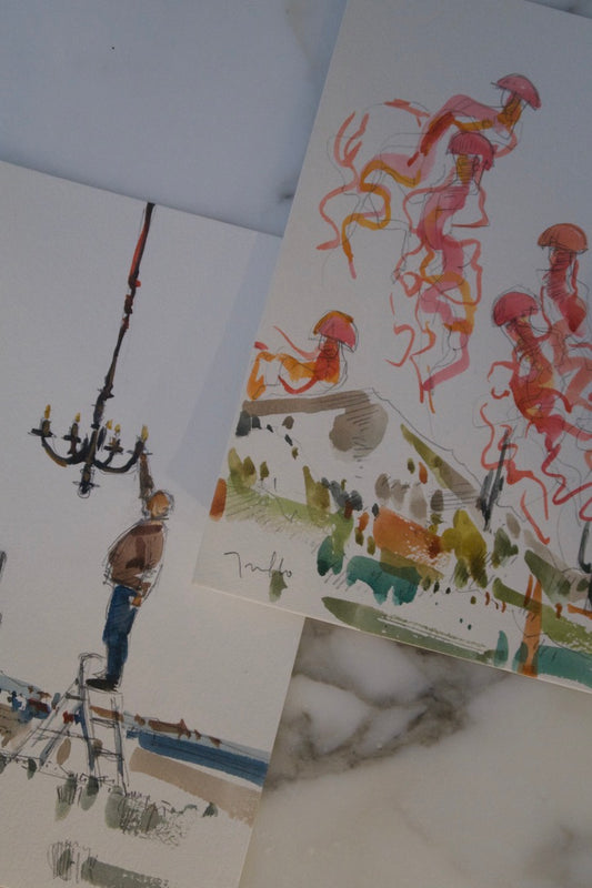 French Still Life Ink Drawing